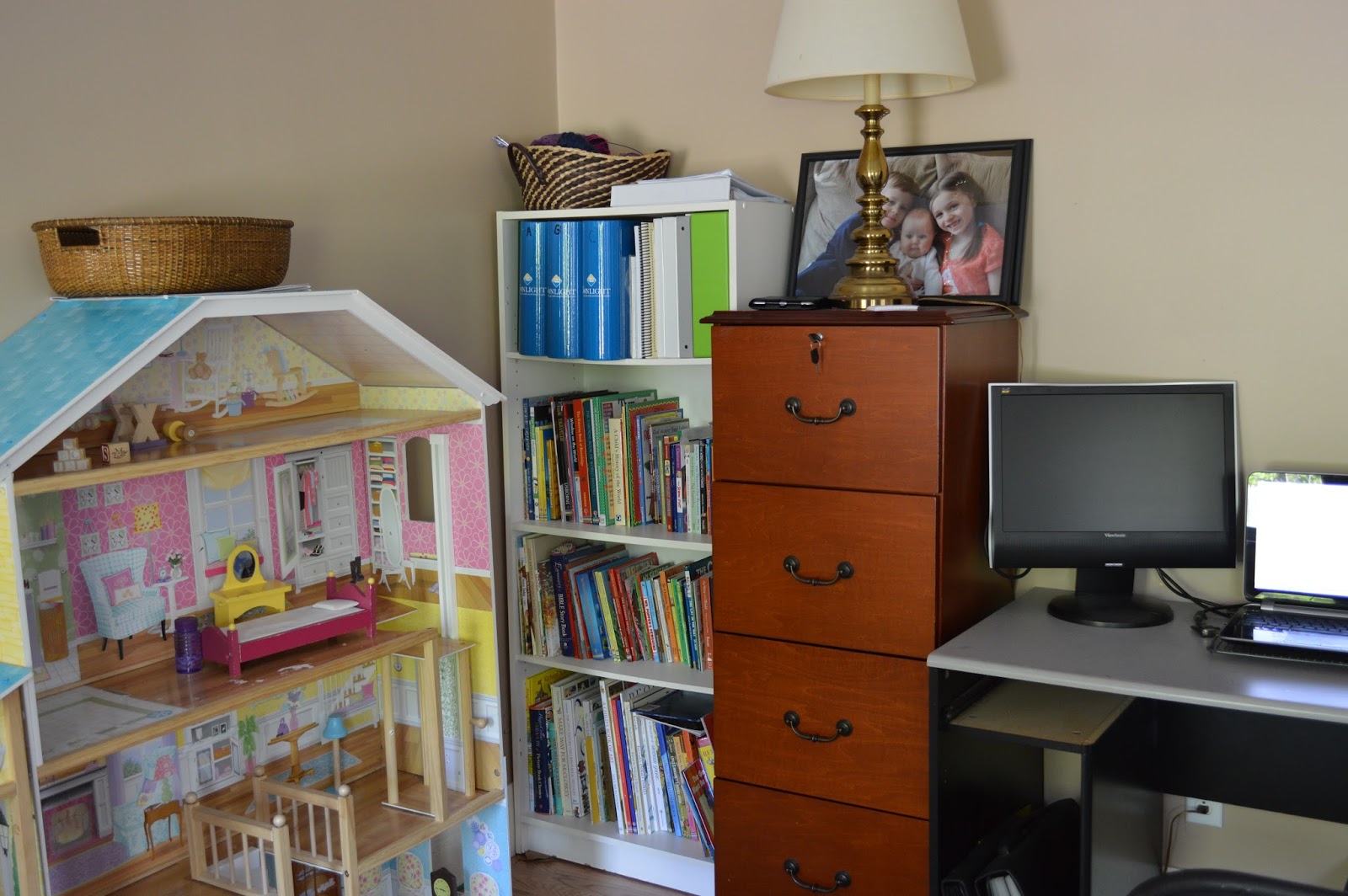 doll house upstairs, and turn this room into more of an office/school room for