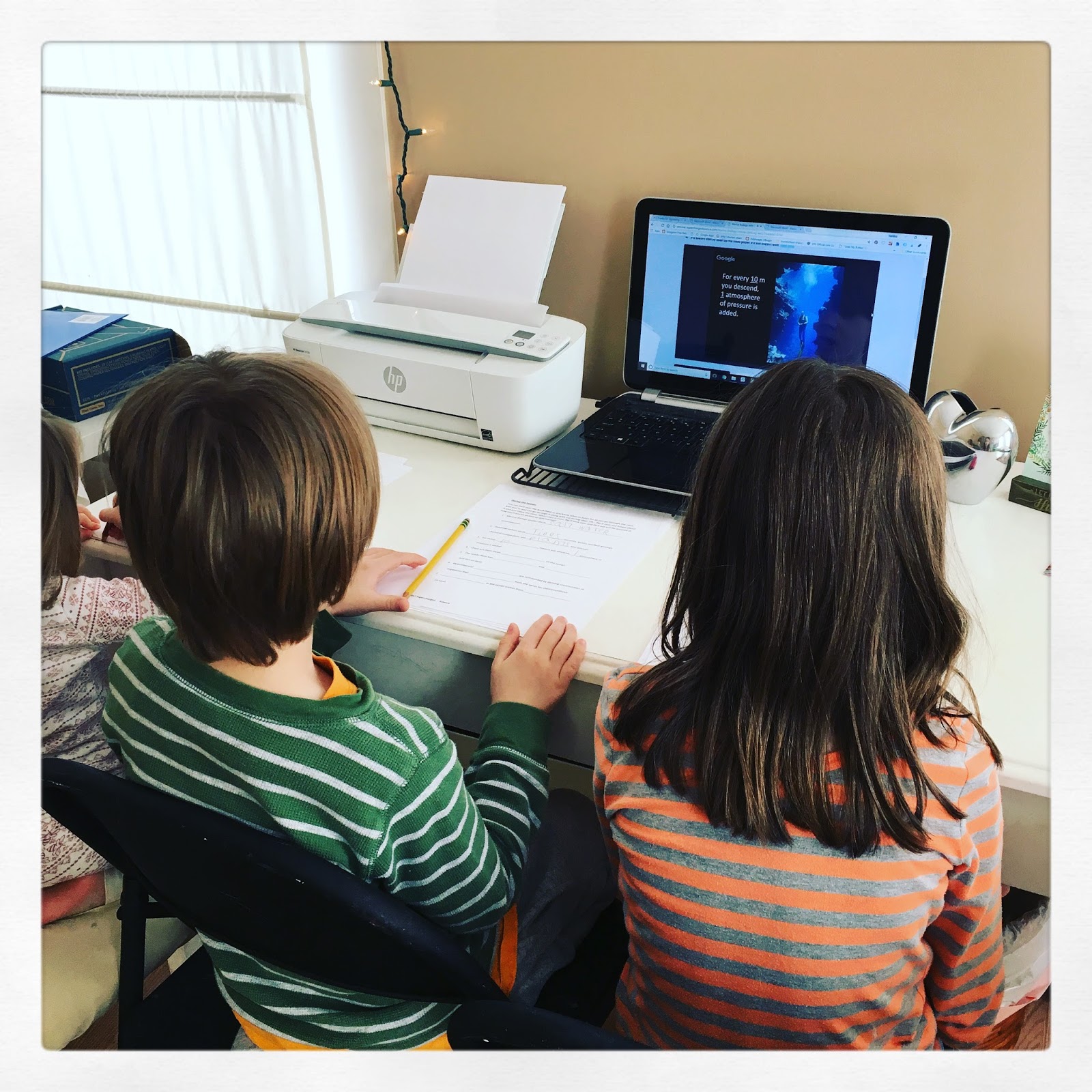 is funny since I was up at 4am. Jack is reading Harry Potter and Emma is starting on her math facts practice while I get pot