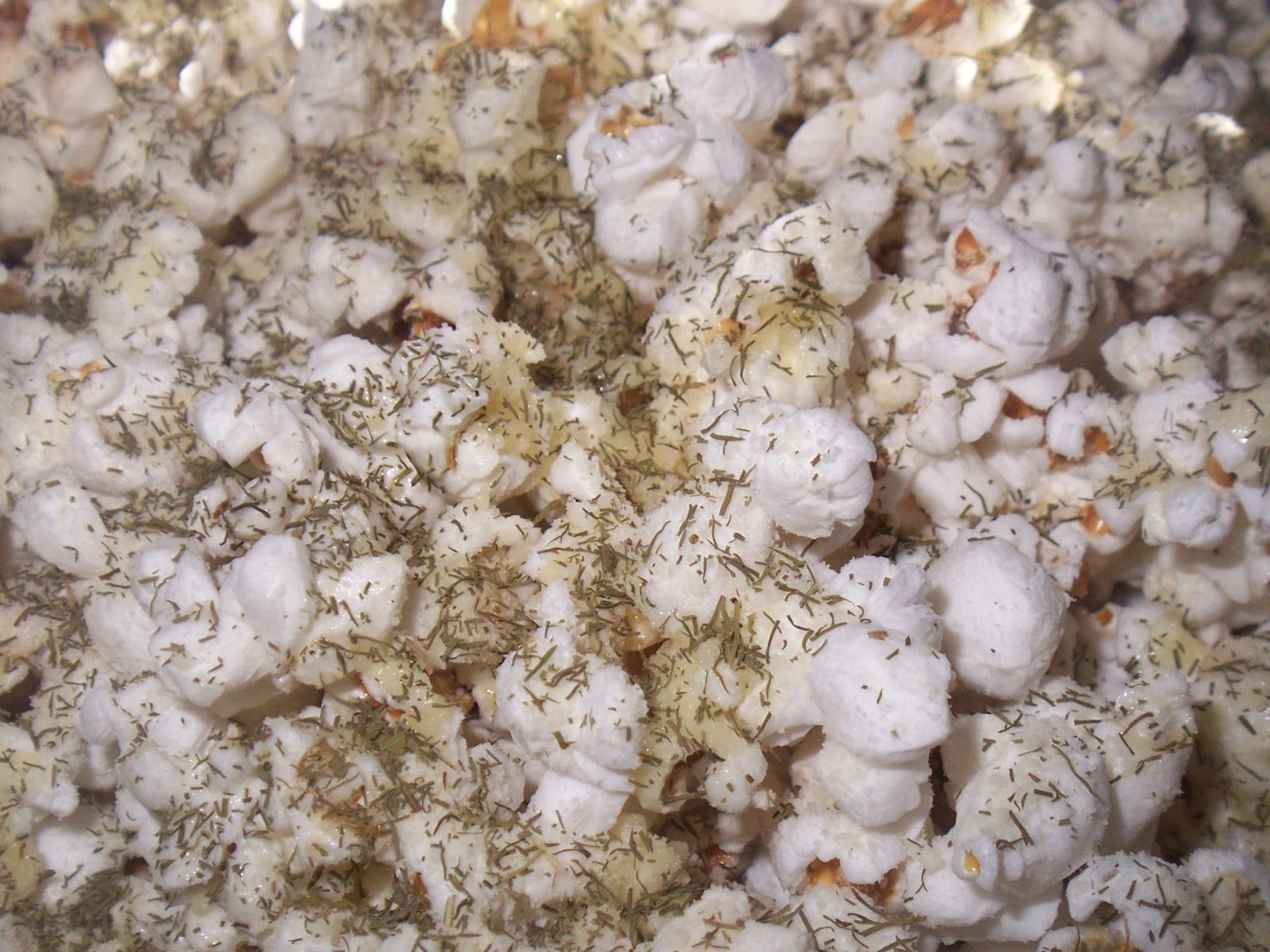 Oh, I bet dill is good on popcorn! I think popcorn is a healthy snack – we do ours in our Whirly Gig popper on the stove. The boys love it, and if there is any left over, the chickens get a yummy treat!