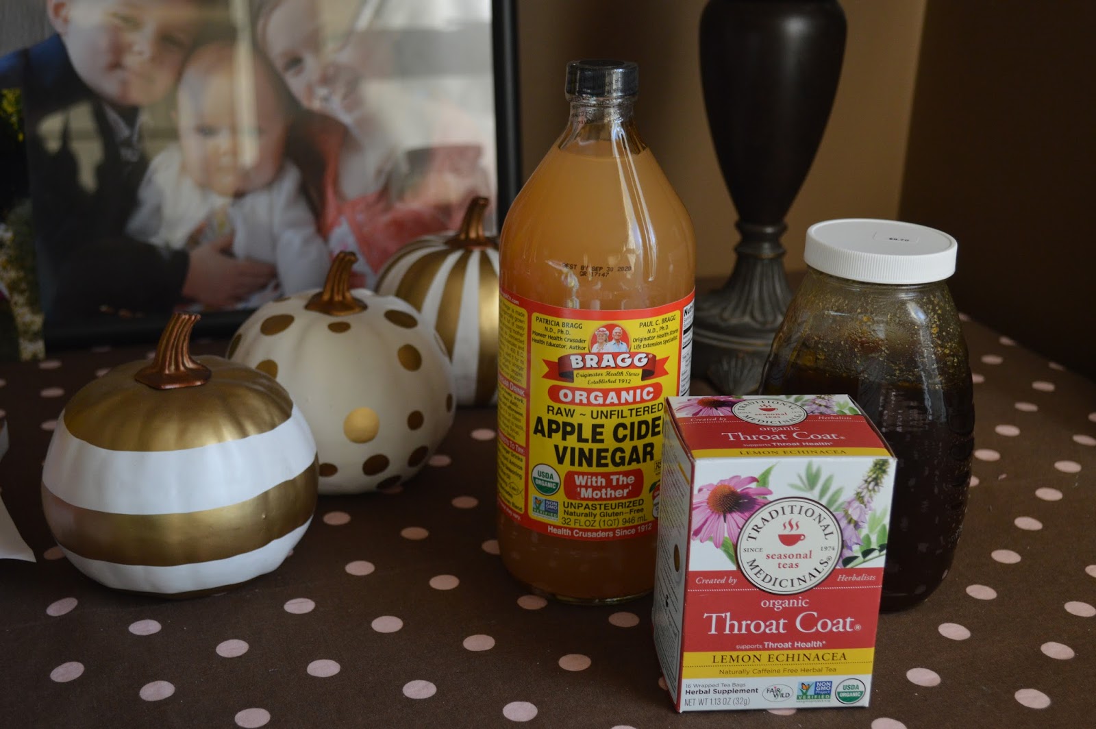 We use the same type of apple cider vinegar. I also keep elderberry syrup around. This year I made fire cider (which won't be ready for 2 more weeks) and I also made a sore throat spray from sage, peppermint, alcohol and honey.